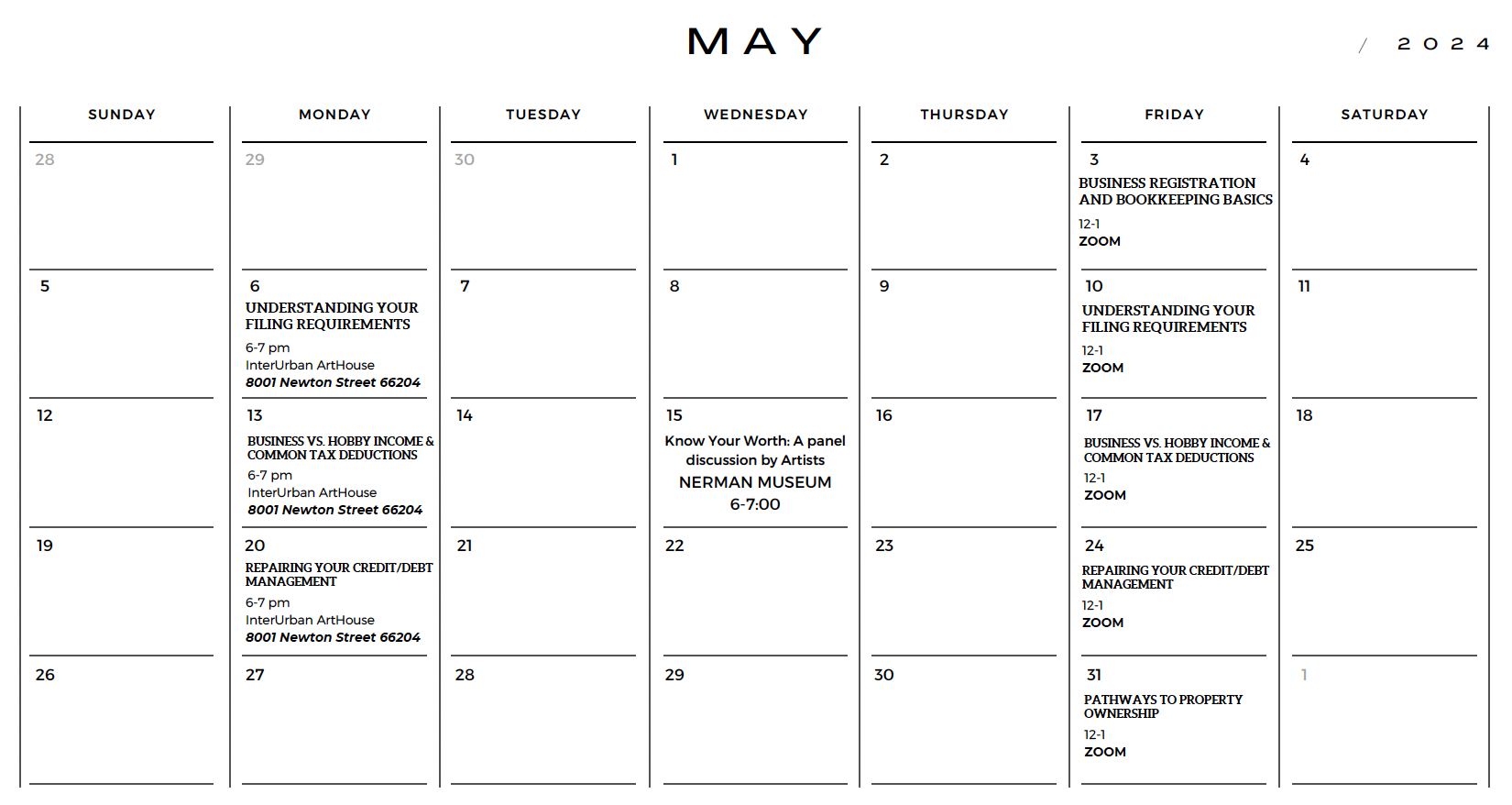 Monday Night classes are at InterUrban ArtHouse from 6-7 pm