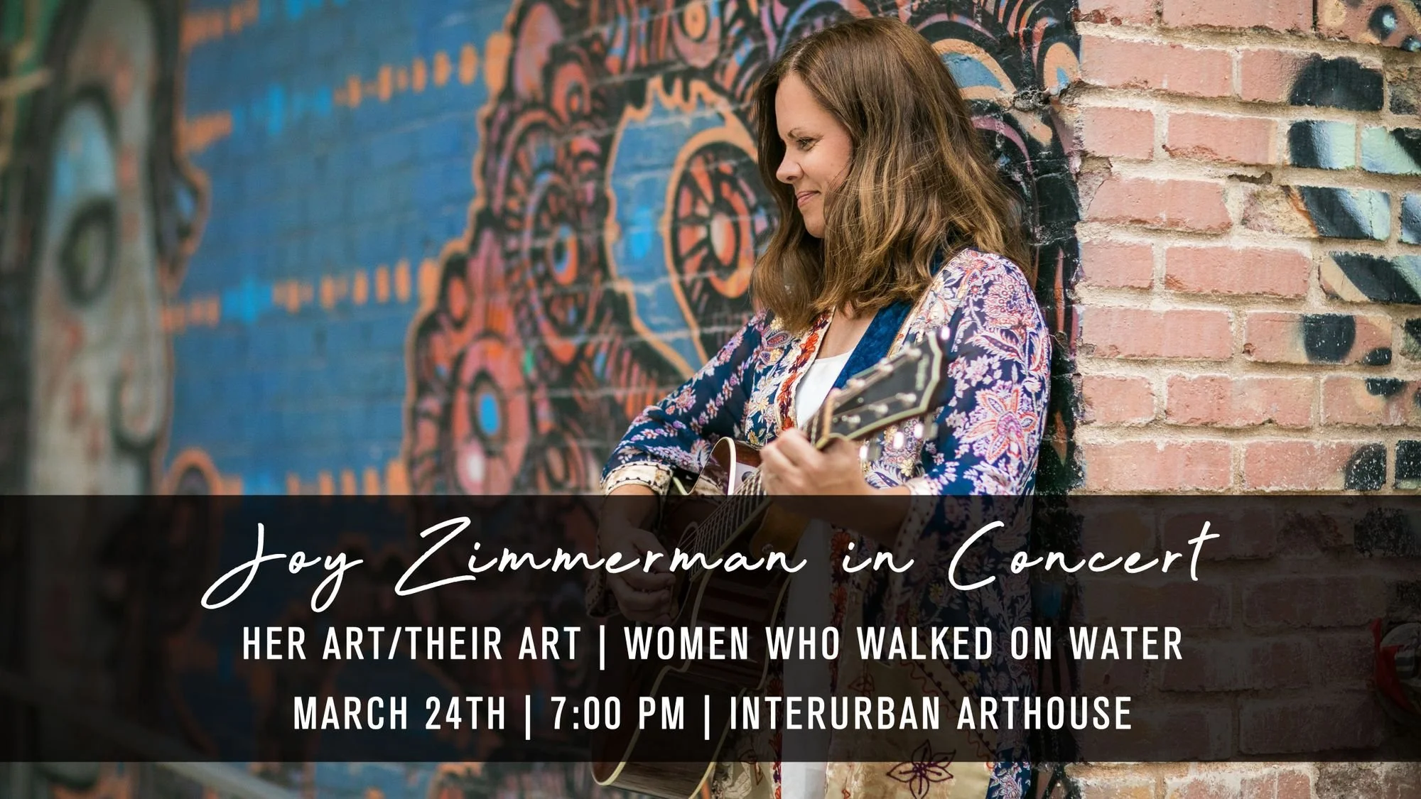 This year's Her Art/Their Art Exhibition (March/April 2022) is a collaboration between the InterUrban ArtHouse, the UMKC Women's Center, and Joy Zimmerman Music. Joy will be sharing music and stories in a Women Who Walked on Water concert with cellist Christine Broxterman on March 24th at 7pm CDT. All proceeds benefit Together Women Rise with its focus on global gender equality. For tickets; Click here