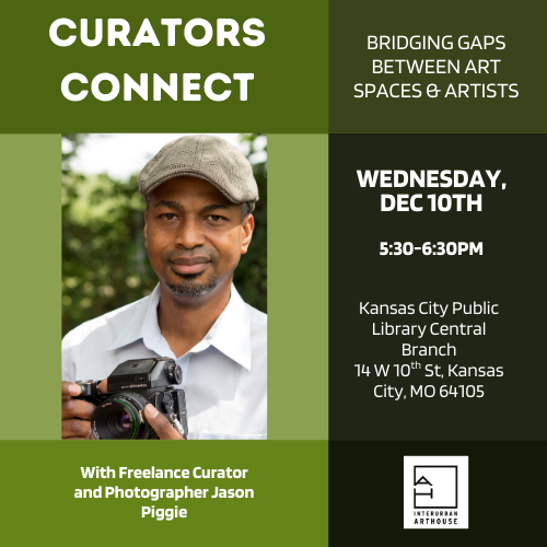 Join us at the Kansas City Central Library, 14 W 10th St in KCMO, for a conversation with freelance curator and photographer Jason Piggie. We’ll meet in the Guldner Gallery, back of the 1st Floor, to view his current exhibition, Dialogue: Stasi Bobo-Ligon and Joseph A. Newton. Then we’ll discuss his art, his curatorial practice, and get your questions answered while also learning about the Library’s gallery opportunities. This is a perfect session for those interested in freelance, non traditional art spaces, and in diversifying their practice.